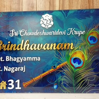 Adorn your home with a Lord Krishna Acrylic Name Plate, radiating divine charm and positivity. Crafted from premium acrylic, it showcases a graceful Krishna motif with customizable engraving. Its sleek, weather-resistant finish ensures durability, making it ideal for indoor and outdoor use. Let the blessings of Shri Krishna bring peace and prosperity to your doorstep!