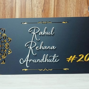 Royal Name Plates’ matte black acrylic name plates offer a sleek, modern touch to your home. With bold lettering and a premium finish, they ensure clear visibility and durability. Customizable in design and size, they create a striking first impression effortlessly.